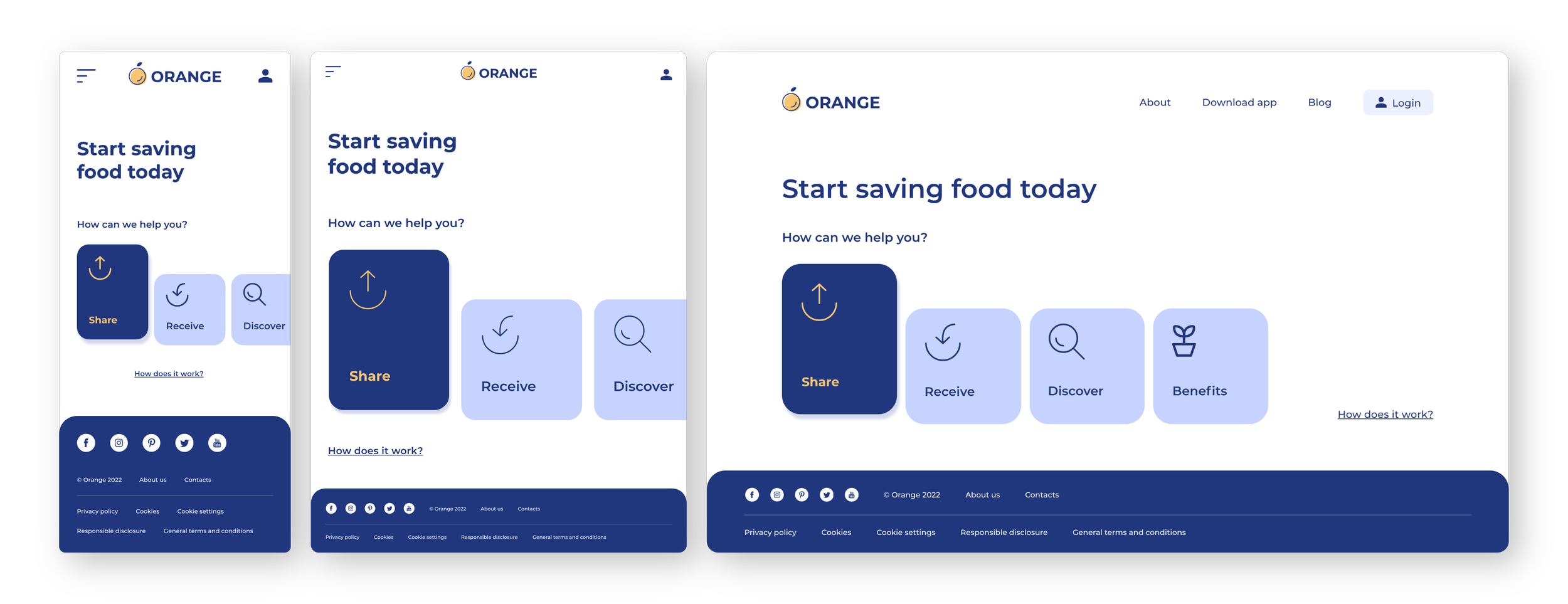 With the app designs completed, I started to work on designing the responsive website. I used the Orange sitemap to guide the organizational structure of each screen’s design to ensure a cohesive and consistent experience across devices.