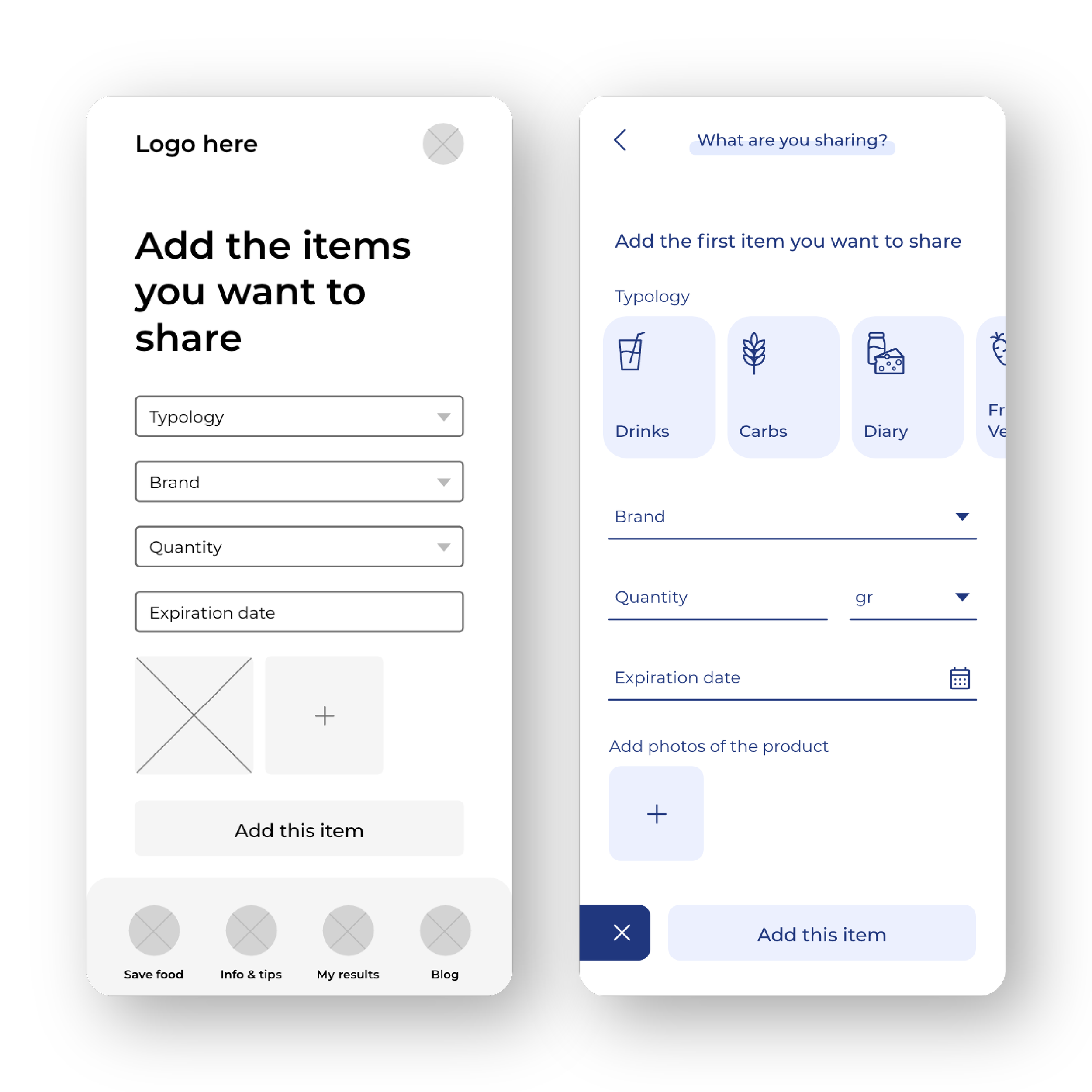 Additional design changes included separating the elements in the list of food items the user is sharing.